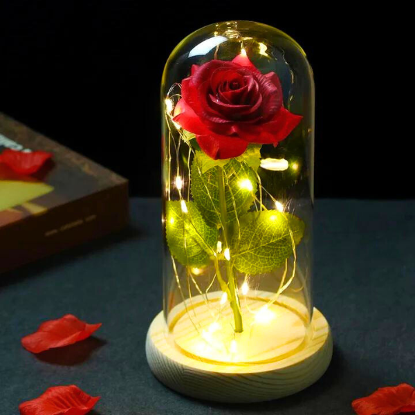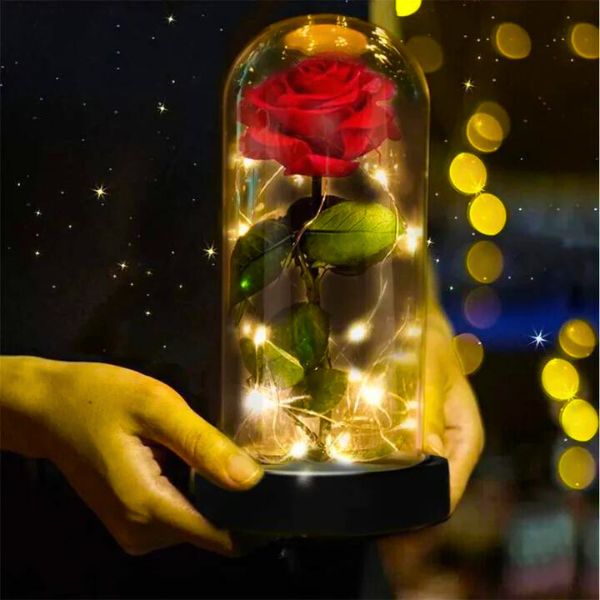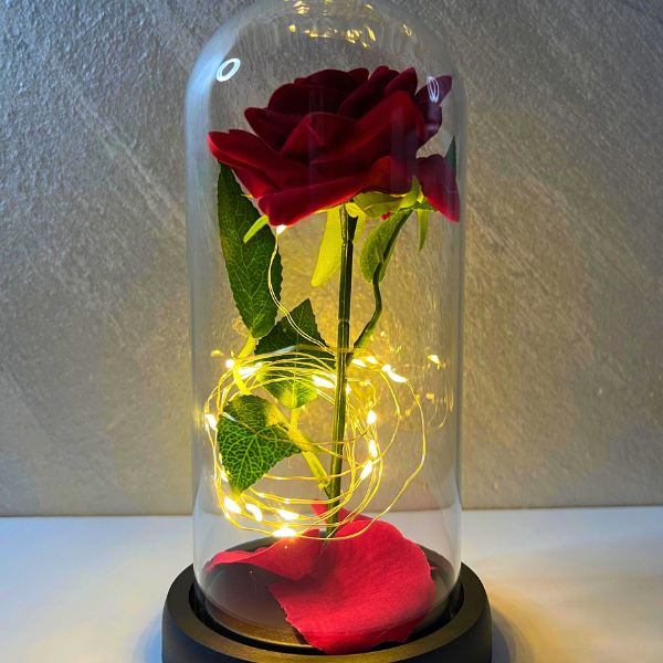 Večna Ruža sadrži svetla koja su dovoljno svetla da mogu da obasjaju deo sobe i sadrži ružu koja je dobro zaštićena staklenom kupolom i daje joj taj lep odsjaj svetlosti koja se može uključiti i isključiti.